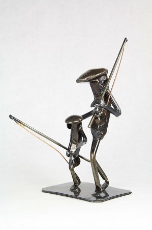- Exquisite Craftsmanship: Skillfully hand-welded from durable railroad spikes, the sculpture showcases fine details in the fishing rods and the tender interaction between the two figures.