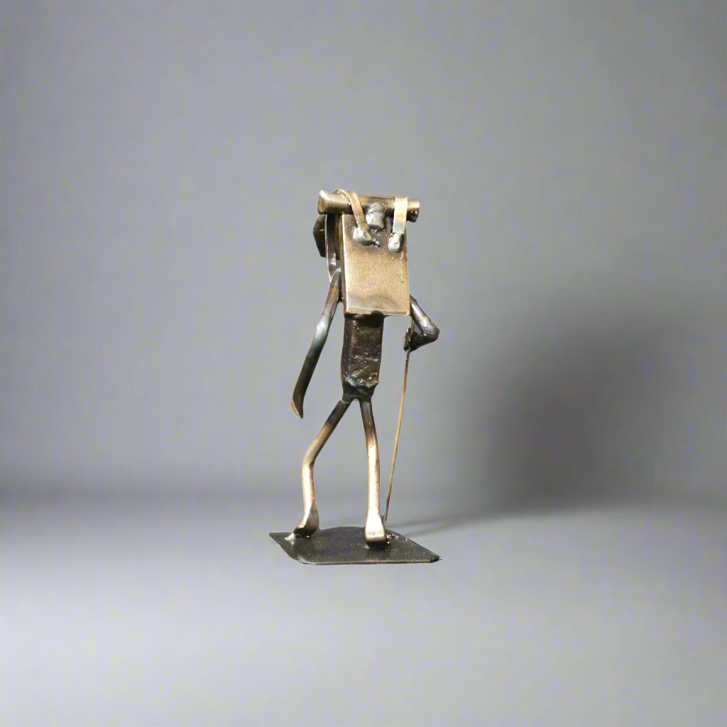 Embrace the spirit of adventure with Hiker, a sculpture that captures the essence of outdoor exploration. The piece features a hiker with a walking stick in one hand and a backpack securely on their back, representing the joy and freedom of hiking and exploring nature.