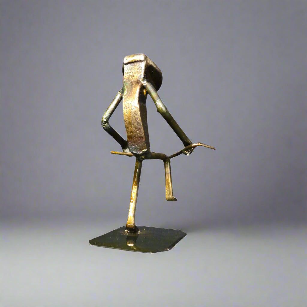 Experience the intensity of the game with our Mad Golfer Railroad Spike Sculpture. This piece captures the dramatic moment of a golfer, bent over in frustration, bending a golf club over their knee. Crafted from durable railroad spikes, this sculpture is a vivid portrayal of the highs and lows that come with the sport of golf.