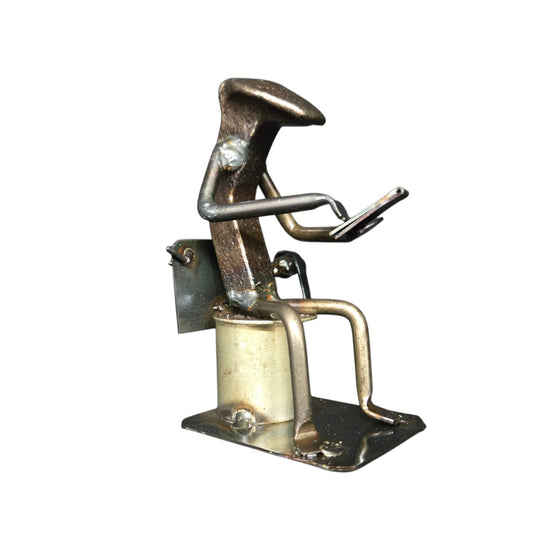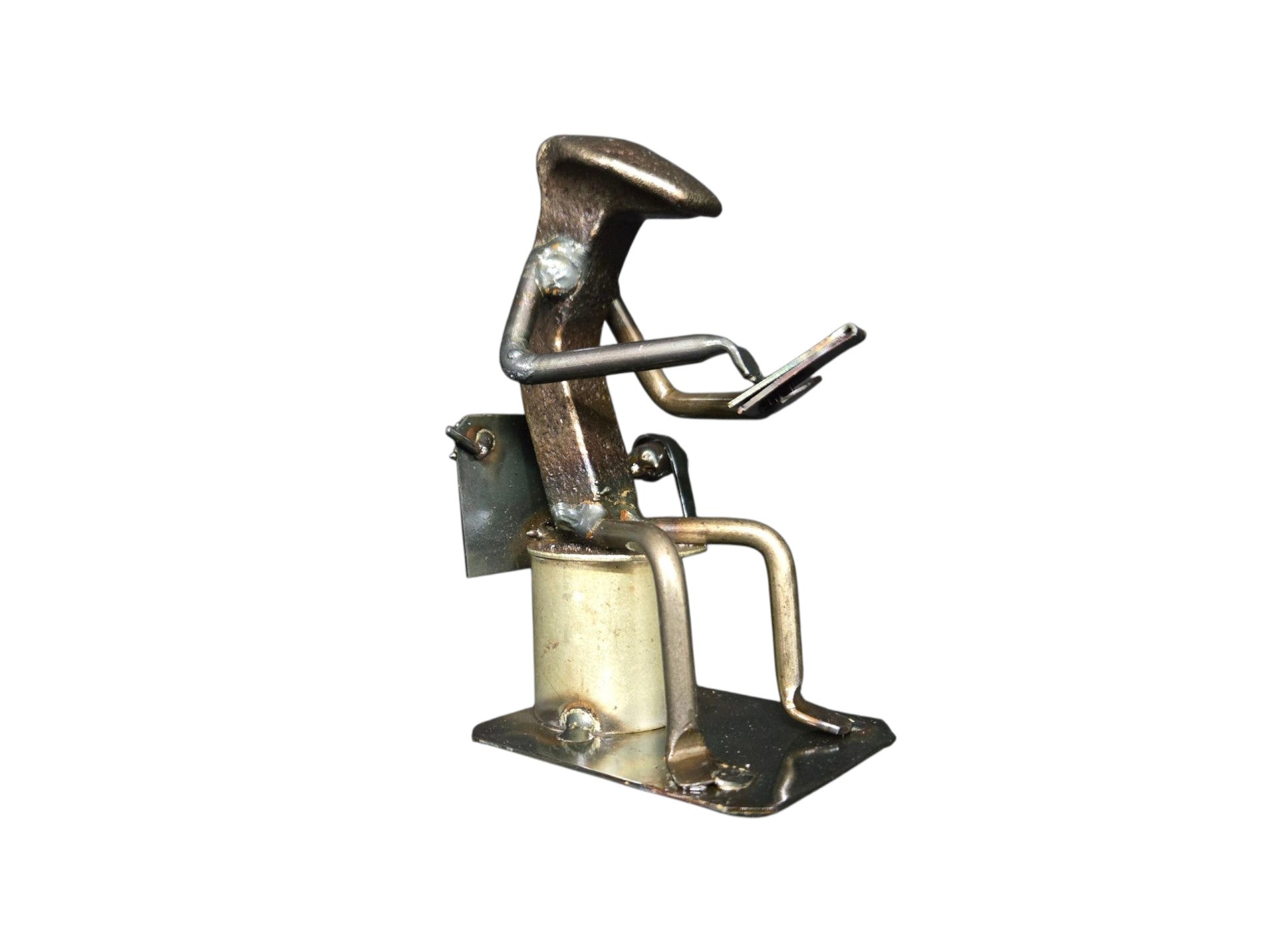 - Expert Craftsmanship: Each element of the cool railroad spike art piece is carefully crafted, from the relaxed sitting posture to the detailed phone in hand.